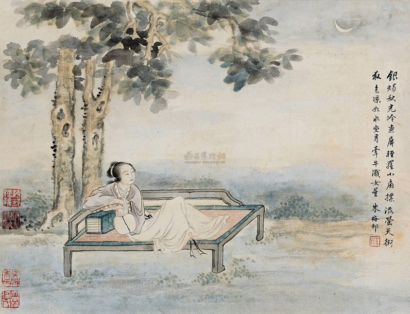燭秋光冷畫屏,輕羅小扇撲